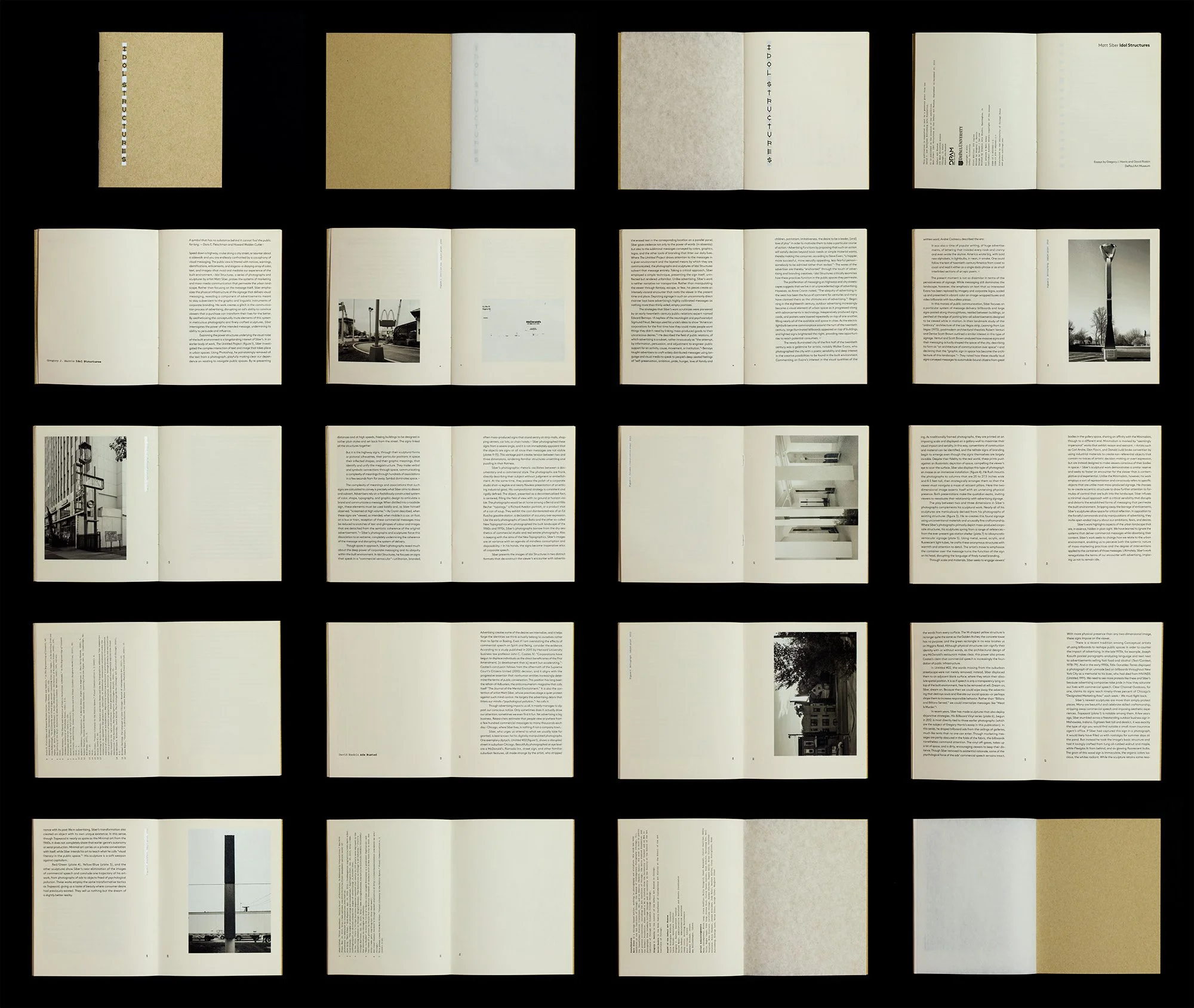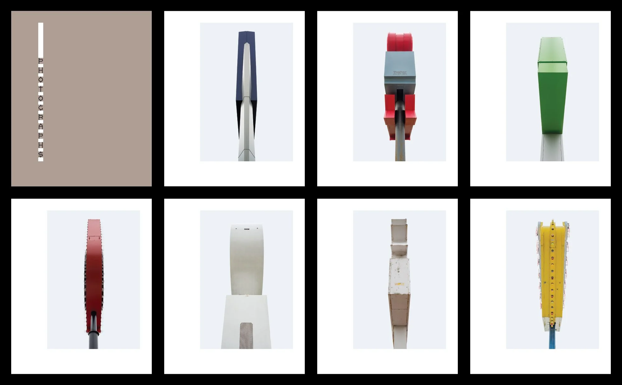 An architectural book that breaks open. Pages become sculptural fragments, reflecting the outsized nature of Siber's Idol Structures.